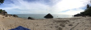 Nachdem wir unsere Tauchkurse beendet hatten, stand für uns erstmal ein Standortwechsel auf Koh Tao bevor. Ich wünschte mir an meinem Geburtstag nach der spartanischem Unterkunft der Tauchschule ein schönes Plätzchen. Wir wechselten vom Sairee Beach zum südlichen Zipfel der Insel. Direkt an unserem Hotel, welches am Hang lag, war ein kleiner Strand fast ganz für uns alleine und ein paar Meter weiter zu Fuß war die Chalok Baan Kaok Bucht und der Freedom Beach.