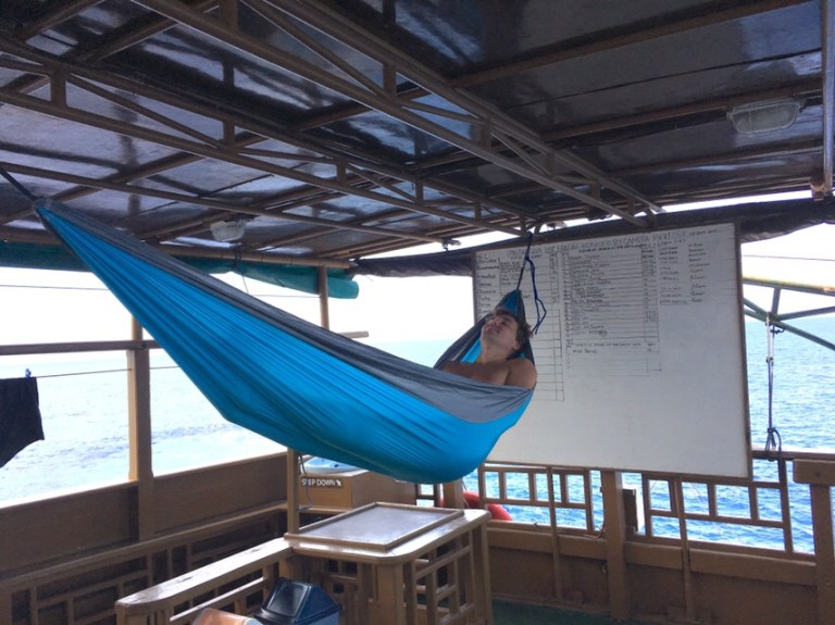 Die Schifffahrt an sich war mega schön und entspannend. Alle Mitreisenden waren sehr nett und wir hatten eine sehr schöne Zeit zusammen. Man sonnte sich entweder am Bug des Schiffes oder entspannte einfach so an Deck. Joachim spannte seine Hängematte am hinteren Ende des Decks. Hier konnten wir auch mal abwechselnd ein kleines Nickerchen machen.