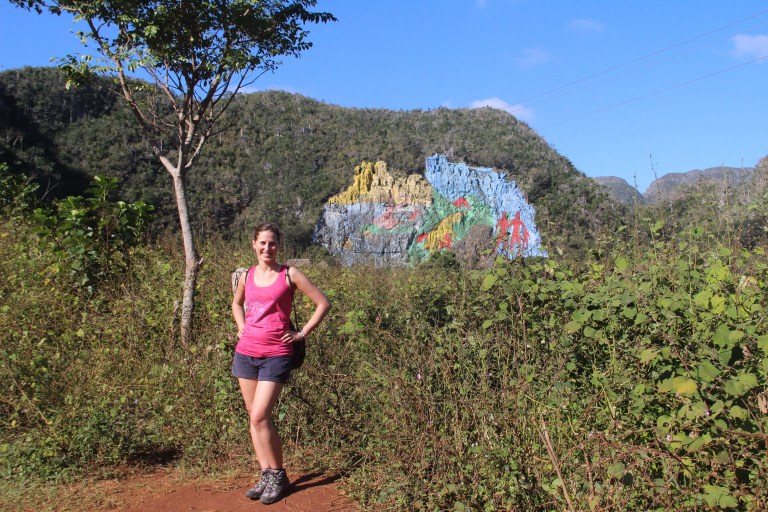 Am nächsten Tag machten wir eine Wanderung auf eigene Faust. Wir wollten dabei vorbei an den prähistorischen Wandgemälden von Viñales. Wir fanden auch den Weg zu dem Wandgemälde sehr gut, anschließend wollten wir aus diesem Weg einen Rundweg machen, das gelang uns auch, aber es führte uns über diverse Weiden, durch Matsch aber vor allem durch wunderschöne grüne Landschaften. Wir machten einen kurzen Stop bei einem älteren Herren, der in einer einfachen Hütte zusammen mit seiner Frau und mit ganz vielen Schweinen, Truthähnen und anderem Vieh lebte. Wir bekamen eine kleine Tasse selbst angebauten Kaffee angeboten und versuchten eine Konversation mit dem netten alten Paar. Auch wenn die Kommunikation nicht ganz so gut klappte, war es trotzdem schön zu sehen wie die zwei lebten. Besonders an der Gegend um Viñales ist die rote Erde, was unglaublich schön anzusehen ist. Bei unserer Wanderung wusste ich manchmal gar nicht wohin ich zuerst schauen sollte, weil es einfach alles so wunderschön aussah.